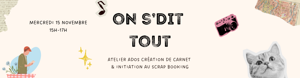 on s'dit tout on s'dit tout Prochaine session Le mercredi 15 octobre 2025 de 15:00 à 17:00 Ical Voir le détail de l'événement